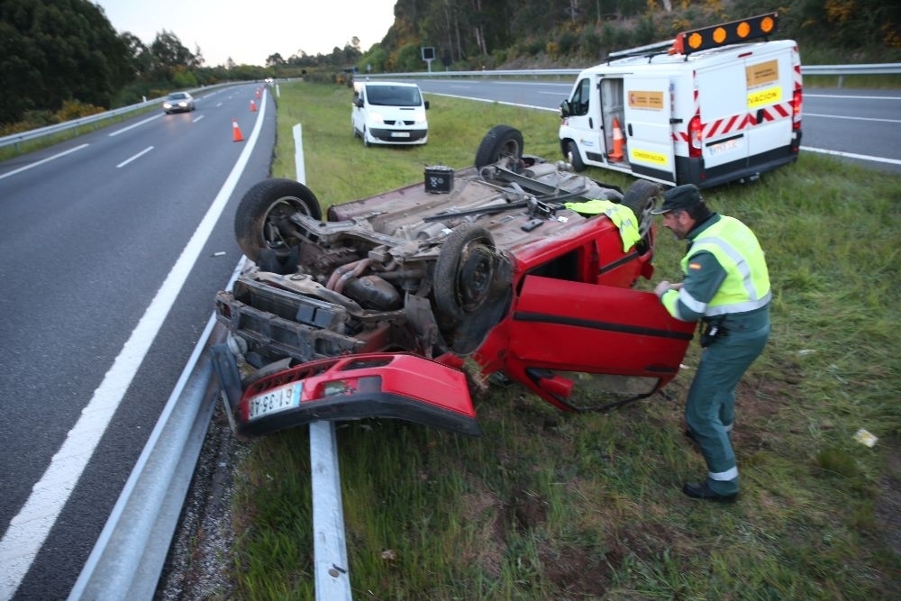El accidente se registró alrededor de las 20:00 horas en la A52, a su pasdo por A Cañiza y en sentido Vigo, cuando un vehículo con matrícula portuguesa se salió de la vía y quedó volcado sobre la mediana.