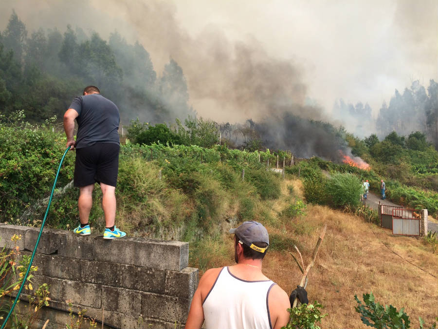 El fuego salta a Redondela y obliga a desalojar viviendas