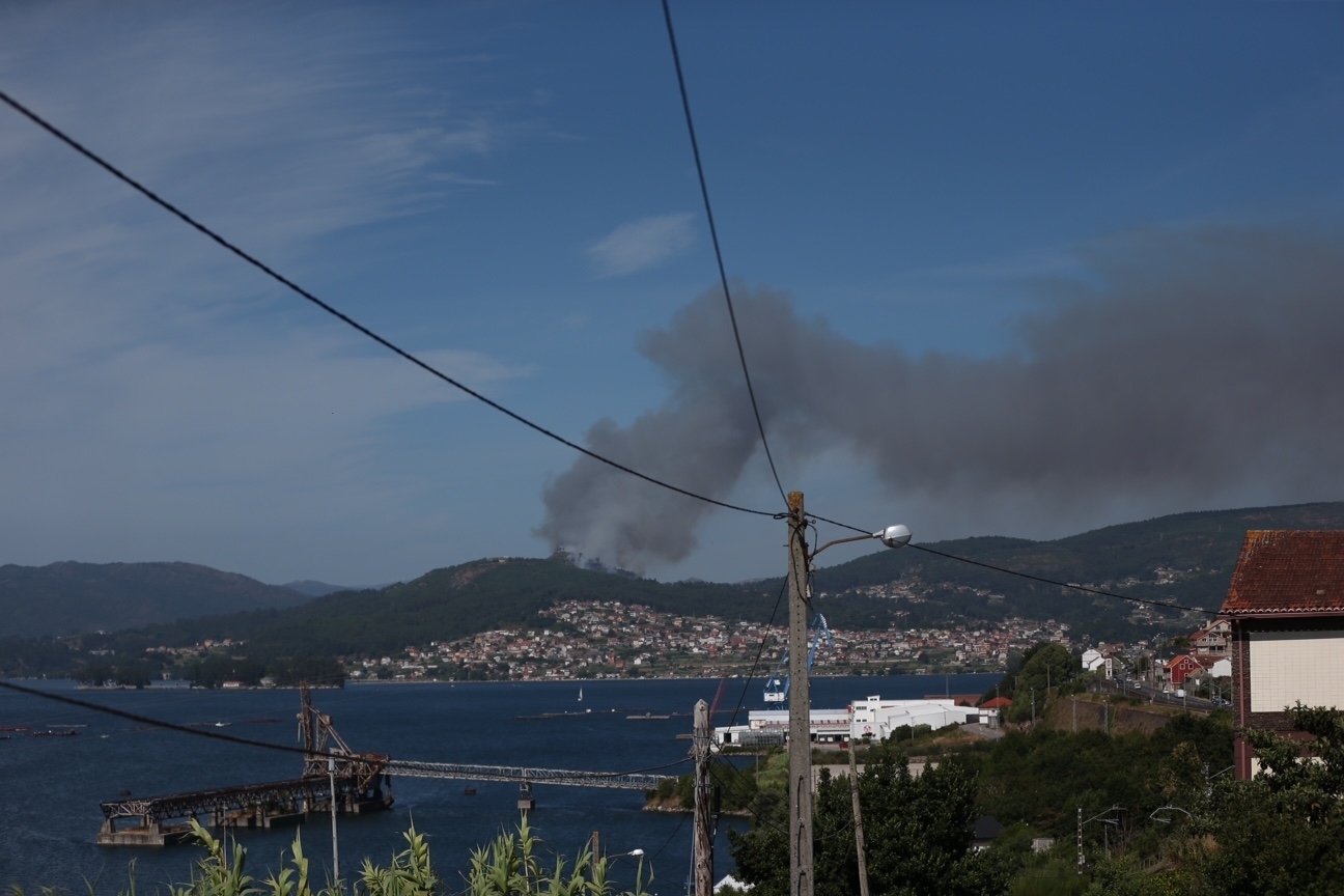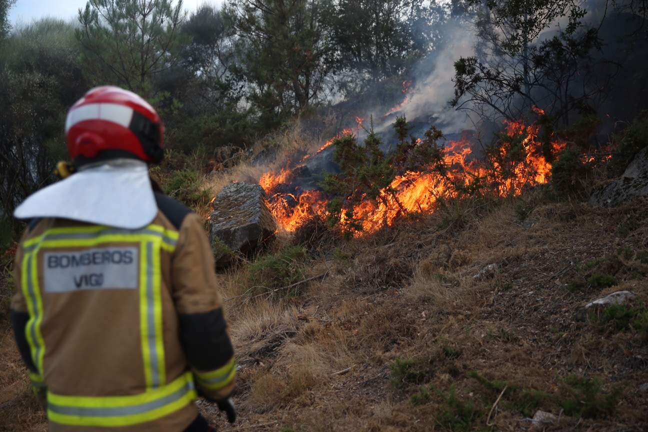 Las llamas llegaron a estar muy cerca de las casas y la enorme columna de humo era visible desde Vigo. En la zona trabajaron un agente, siete brigadas, cinco motobombas, cuatro helicópteros y un avión. Ante el peligro de que el fuego llegase a las viviendas, también se desplazaron hasta el lugar efectivos de los Bomberos de Vigo.