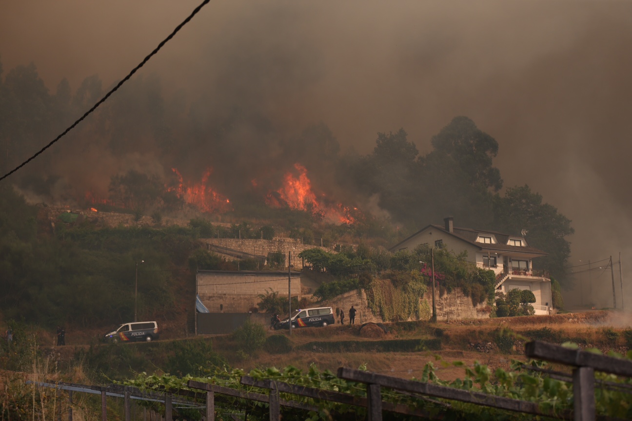 ACTUALIZACIÓN: El fuego se ceba con Soutomaior y obliga a cortar la AP9 en Caldas