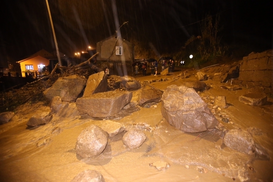 Una ladera de un monte se desploma en Redondela sobre coches y casas