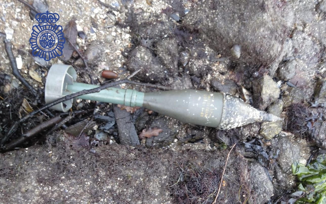 Agentes de la Policía Nacional han conseguido neutralizar una granada de mortero e evitar algún incidencia grave con víctimas tras recibir una alerta de un ciudadano que se disponía a pesar en una zona próxima al museo Meirande, cerca del Estrecho de Rande.
