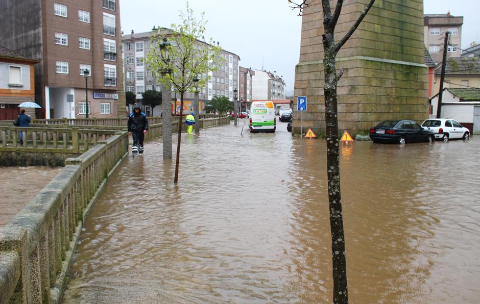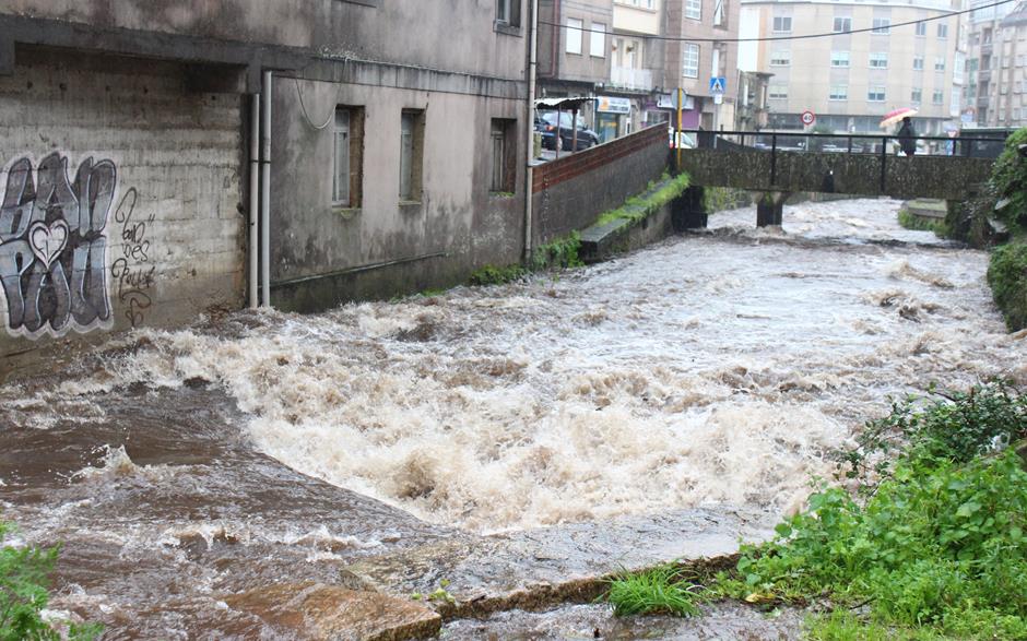 En el mediodía de este viernes se produjeron los problemas más serios al desbordarse el río Maceiras en Vilavella. El agua superó el nivel del curso se agua y se extendió por las calles. Varios coches tuvieron que ser empujados y la Policía Local de Redondela cortó el tráfico en la confluencias de las calles José Regojo, Salgueiral, Paseo da Xunqueira y Avenida Ernestina Otero.