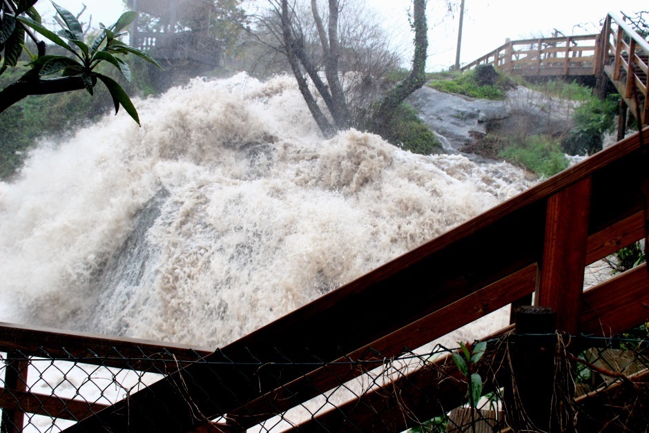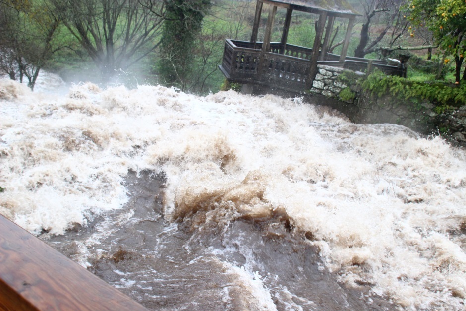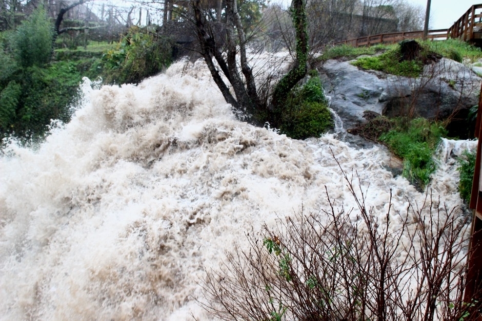 Las lluvias causaron estragos en el centro de Redondela, pero también imágenes de enorme belleza en la cascada de Reboreda. Debido al enorme caudal, el salto de agua del río Alvedosa presentaba un aspecto espectacular. Incluso cubría parte de la senda habilitada para llegar al lugar, pero con un pequeño rodeo se podía acceder. Sonido y fuerza del agua.