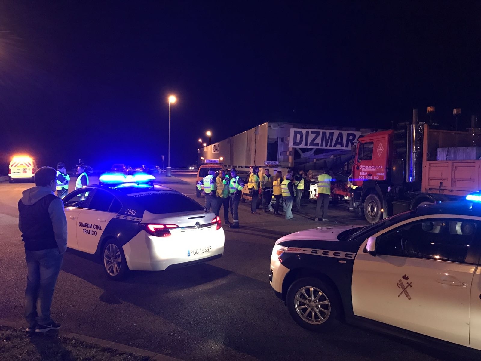 La Guardia Civil de Tráfico reinició el convoy a las 23:30 horas de la noche de este martes después de que técnicos alemanes revisasen a fondo el vehículo especial para comprobar que ya no existe riesgo de caída sobre la calzada.