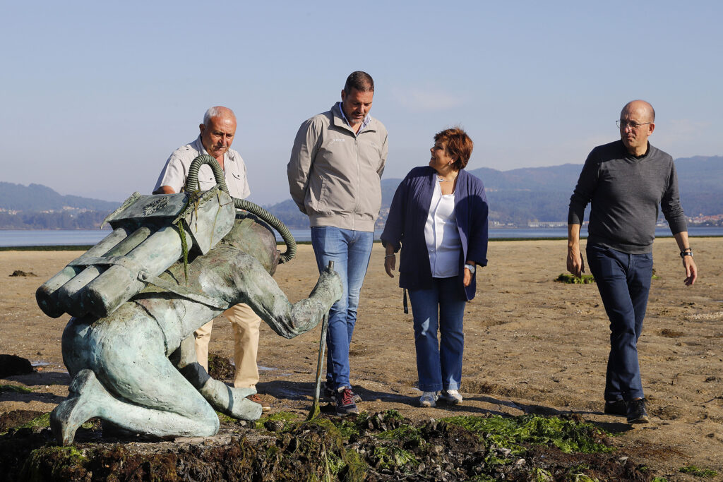 Dadas las características de su localización, en la ensenada de San Simón, y las limitaciones de los cambios de la marea, las figuras fueron trasladadas al taller para su limpieza y reparación y devueltos de nuevo a su lugar, «donde espero sigan disfrutando de su peculiaridad tanto los vecinos como los visitantes», apuntó López Campos.