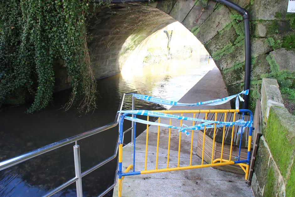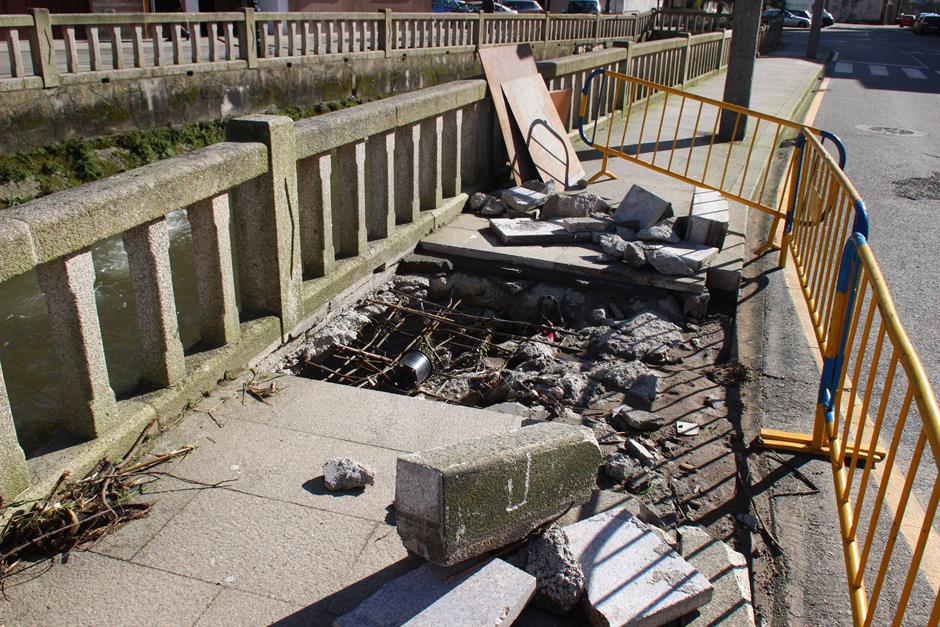 Durante la jornada se terminaron de retirar todos los sacos de sal y las barreras de contención. También trabajaron las bombas de achique para limpiar los bajos y muchos de los comercios afectados abrieron sus puertas. Sin embargo, alguno de ellos todavía estaba intentando volver a la normalidad por los daños causados y en su escaparate lucía un elocuente ‘cerrado por inundación’. En lo referente a la vía pública, la principal secuela fueron los enormes agujeros que se hicieron en las aceras. Dos de estas construcciones tuvieron que romperse para permitir el regreso del agua al río, ya que ejercían de tapón. Estas aceras fueron construídas en los últimos años y la subida de agua mostró que su toma de pluviales era insuficiente.