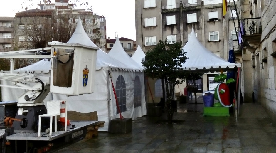 A lo largo de la mañana de este martes los operarios terminaban de montar los distintos módulos de la carpa, que estará disponible para facilitar la espera de los niños y mayores en caso de que la lluvia impida realizar la habitual Cabalgata por el centro de la localidad prevista para las 18:00 horas. En la misma carpa estará presente la Coca Simona y un Bob Esponja.