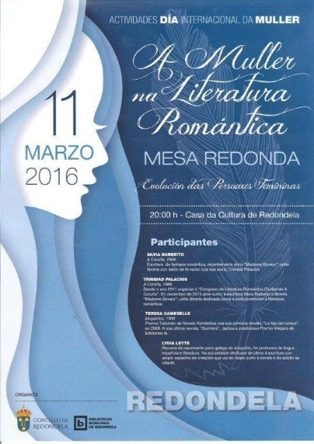 «A muller na literatura romántica» é o lema do evento, que organiza a Concellería de Muller do Concello de Redondela coa colaboración das Bibliotecas Municipais do municipio con motivo da celebración do Día Internacional da Muller. A entrada e de balde.