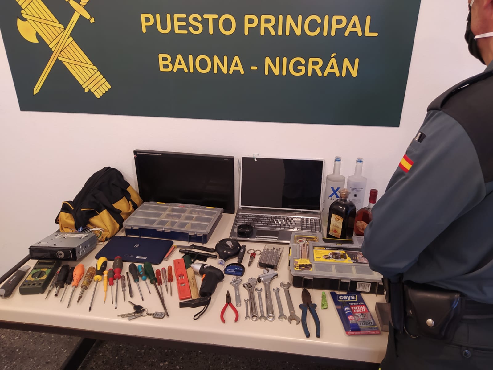 En el registro que se efectuó en el interior de su casa en Baiona se recuperó una importante cantidad de los efectos sustraídos, en su mayor parte ropa, calzado y herramientas, además de una bicicleta y dos tablas de surf.