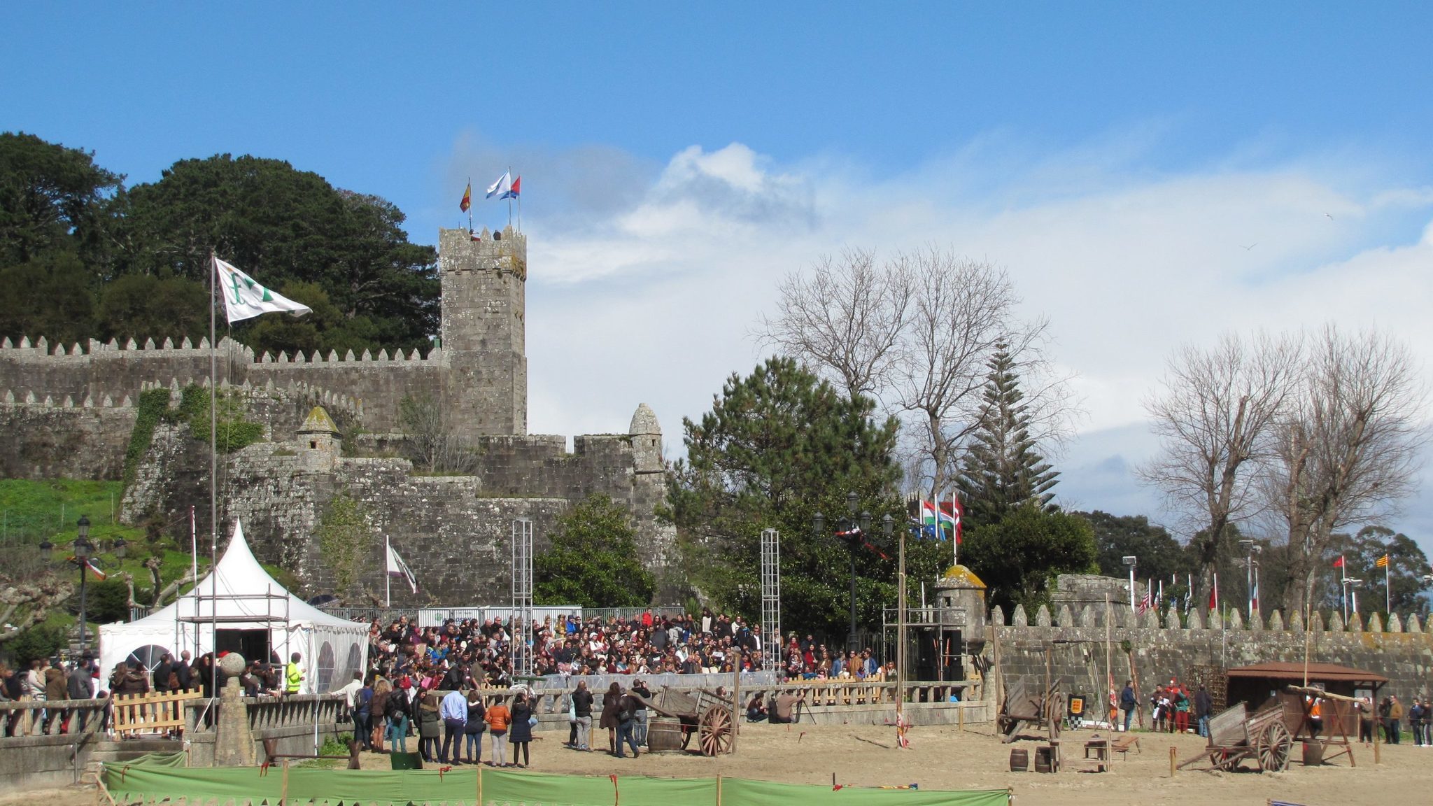 Otra de las novedades fue el montaje de un campamento medieval en la playa Concheira, donde los más pequeños realizaron paseos en pony o a caballo. Además, se reforzó el parque de aventuras en A Palma, con dos rocódromos y dos rappels desde la muralla del Parador, así como el descenso de tirolina desde la muralla del Contestable.