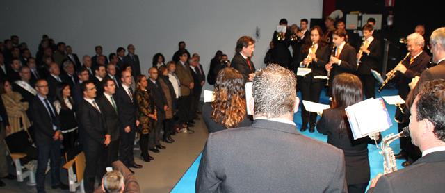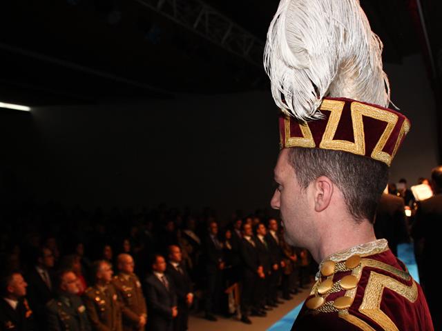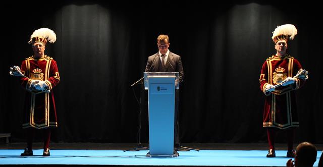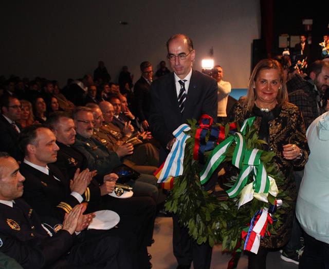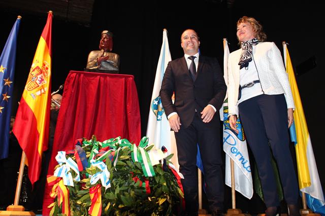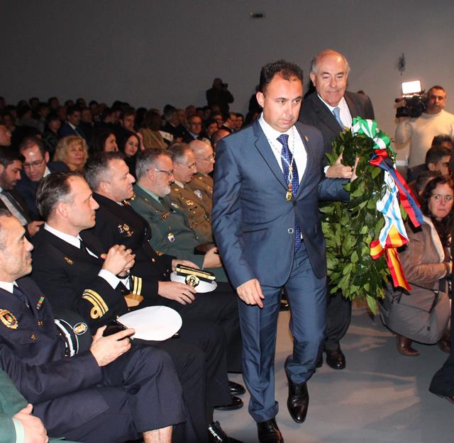 Dentro de edificio de realizó un acto con tres bloques. El primero con la intervención de Pousa, que dio paso a las autoridades y, por último, cerró el acto una ofrenda floral al busto de Martín Alonso Pinzón y la interpretación de los himnos, el de Galicia y el de España. En primero en intervenir fue el alcalde de Baiona, Ángel Rodal, que destacó el trabajo de todos para «conseguir la máxima distinción». Tomó el relevo su homólogo de Palos de la Frontera.