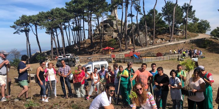 El día de ponerse manos a la obra ha llegado y tras ser recibidos por el alcalde de Baiona, Ángel Rodal, se han dirigido al parque Mercedes de la Escalera, lugar donde se alza el monumento a la Virgen de la Roca, para iniciar con un centenar de vecinos la reforestación, en la que también participaron sus familiares, y llevar a cabo la plantación de cien árboles autóctonos.