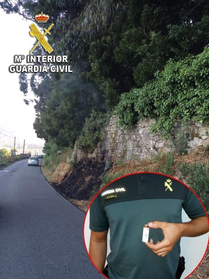 La primera patrulla de la Guardia Civil del Puesto Principal de Baiona-Nigrán desplazada al lugar fue la que abordó al varón tras levantar las sospechas de los agentes. En la zona trabajaban ya los miembros del GES de O Val Miñor y un agente forestal, con la colaboración de los propios vecinos, temerosos de que el fuego alcanzase las viviendas. Los bomberos localizaron cinco focos distintos de ignición en un pequeño tramo de no más de medio kilómetro, añade la Guardia Civil.