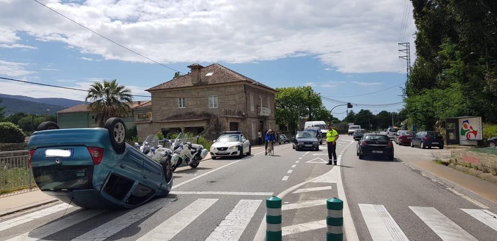 Según informó la Comandancia de la Guardia Civil, un vehículo Renault, conducido por un vecino de Gondomar de 40 años, invadió parcialmente el sentido contrario y colisionó con una motocicleta que circulaba en sentido Gondomar. El piloto, de 60 años y también vecino de Gondomar, no pudo hacer nada por evitar la caída y a consecuencia del impacto chocó contra un muro y resultó herido grave.