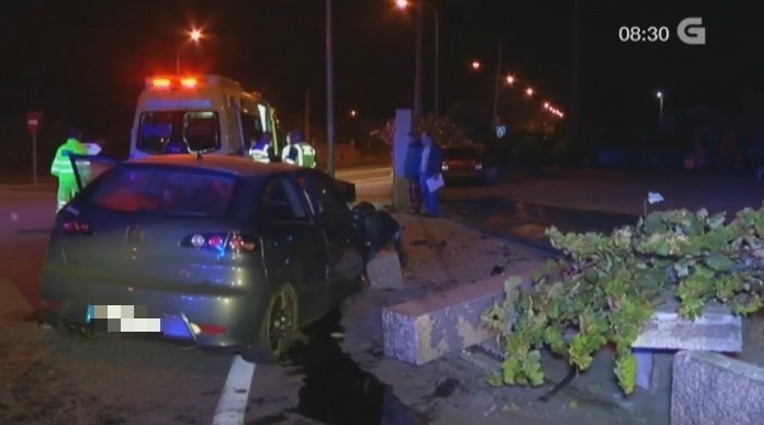 El accidente se registró alrededor de las tres de la madrugada en la rotonda que une la carretera PO-552 (Vigo-Baiona) con la autopista AG57 cuando por causas desconocidas un vehículo Seat Ibiza se salió de la vía en la glorieta y fue a colisionar contra el cierre de una casa.