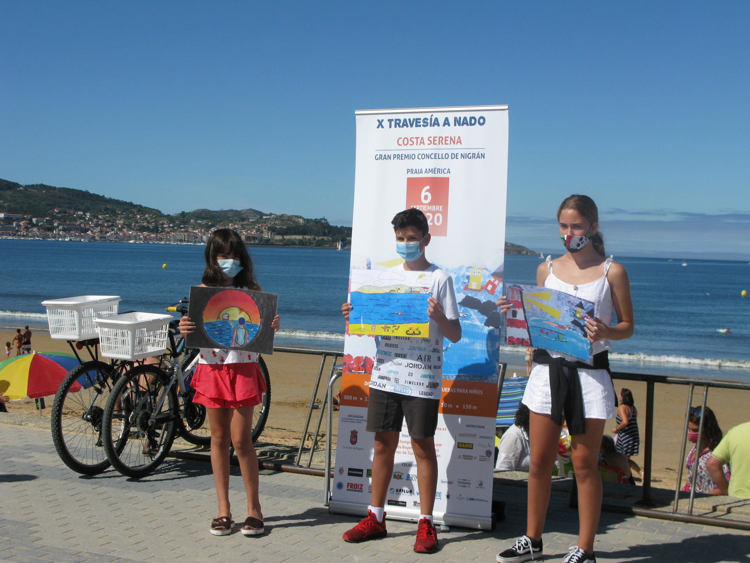 Durante la rueda de prensa se hizo entrega de los premios a los ganadores del concurso de dibujo infantil, que se convocó este año con motivo de la X edición de la travesía a nado entre los colegios de Nigrán. La ganadora del concurso fue Rita Álvarez Araujo, de 12 años, alumna del CEIP Carlos Casares de Nigrán. La segunda clasificada fue Xiana Lameiro Fernández, de 10 años, del CEIP Humberto Juanes, y el tercer clasificado fue Iago Iglesias Fernández, de 13 años, del CPI Arquitecto Palacios.