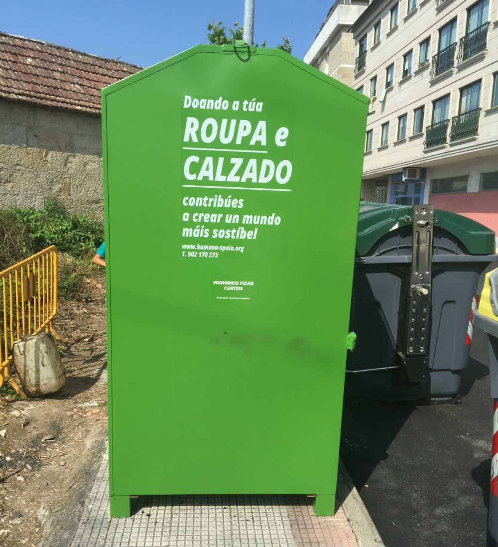 «No parece el sitio más adecuado para poner un contenedor, porque o lo saltas, algo bastante complicado, o tienes que pasar a la calzada para evitarlo», señala este lector. El contenedor de recogida de ropa está muy cerca del Concello de Nigrán, en la calle Rvdo. J.M.Pérez.