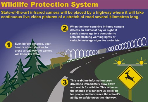 Un consorcio formado por entidades sin ánimo de lucro, por el servicio de conservación de parques nacionales y por las autoridades estatales invirtió alrededor de 600.000 dólares en un sistema de detección a partir de sensores infrarrojos y señales luminosas. Cuando un ciervo invadía la carretera se activaba un sistema que avisaba a los conductores varios kilómetros antes, contribuyendo a incrementar la atención.
