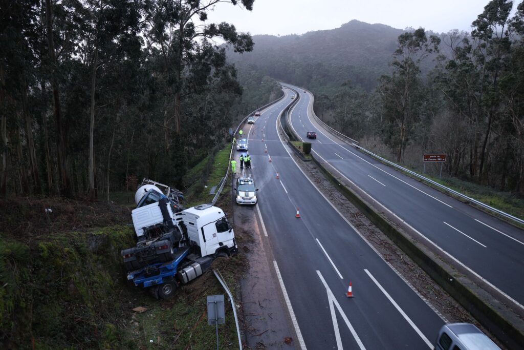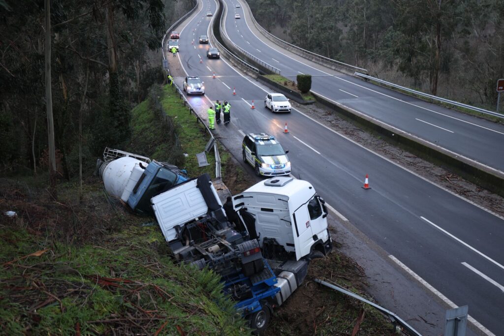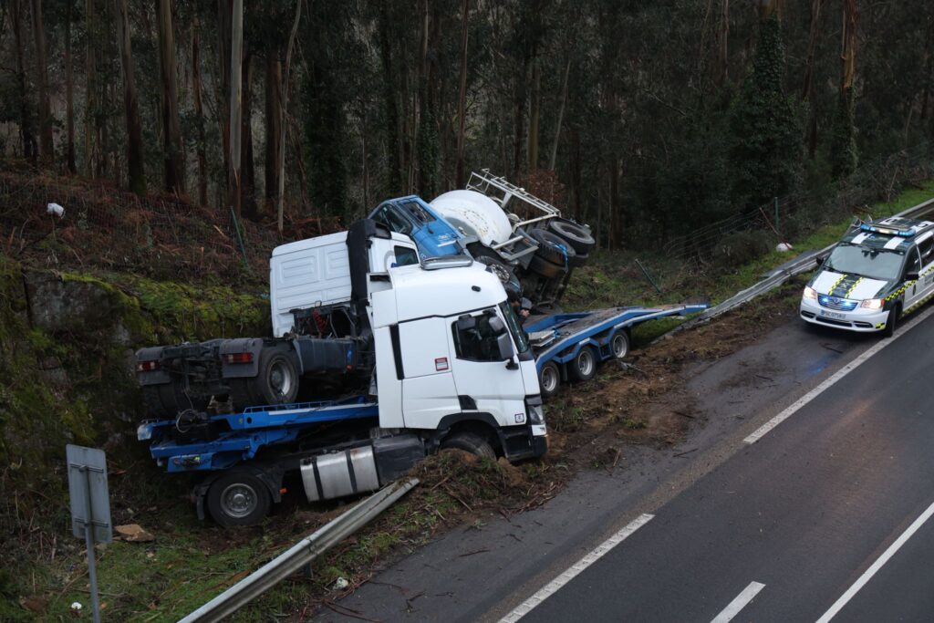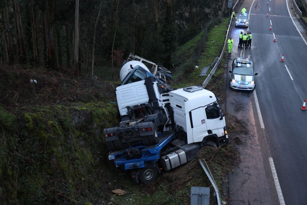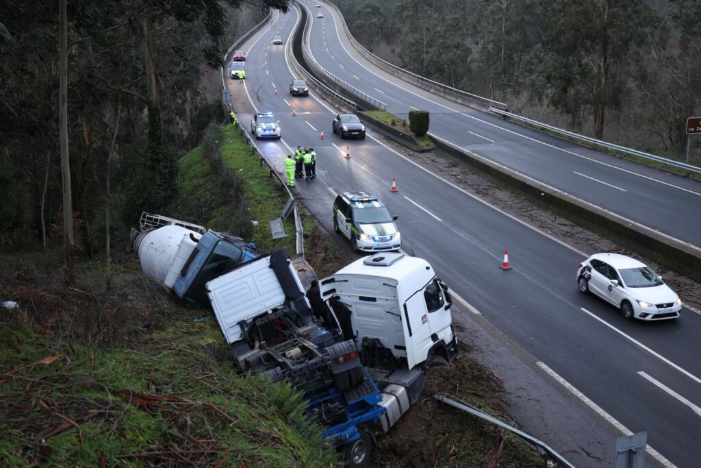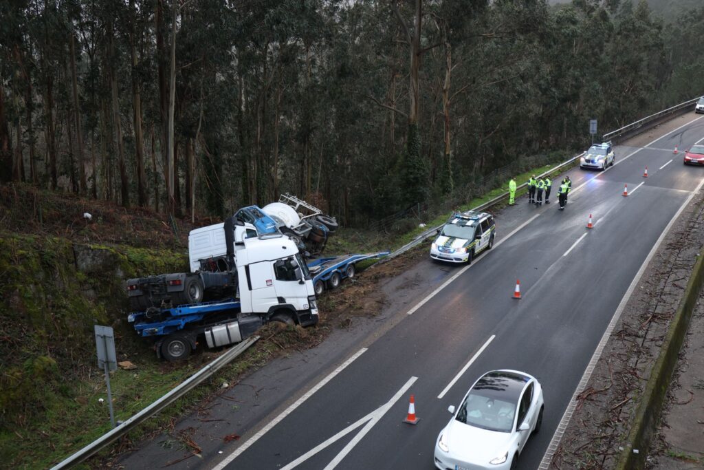 Tags: accidenteag57CamiónCunetaGuardia CivilTRÁFICOVal MiñorVolcado