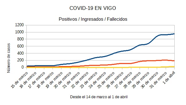 El área sanitaria olívica ha empezado abril con dos datos muy contrapuestos. Por un lado, la Consellería de Sanidade ha informado este miércoles de la muerte de otras cuatro personas con Covid-19 en el hospital Álvaro Cunqueiro y, por otro, ha asegurado que el aumento de casos de coronavirus en Vigo ha sido muy pequeño con respecto al del día anterior.
