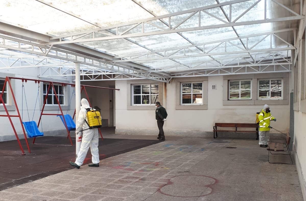 O servizo de loita contra incendios da Xunta desinfecta o CAPD de Chapela