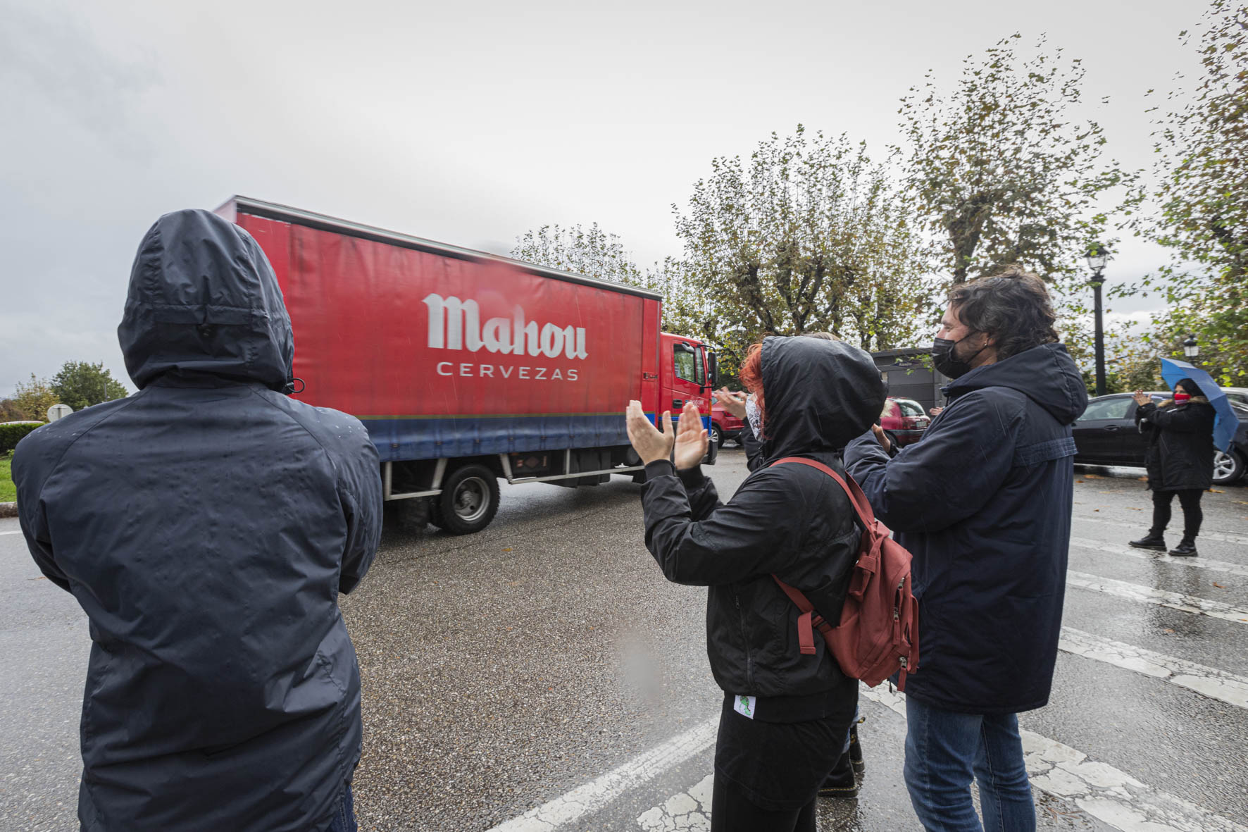 Aplausos a la hostelería de Vigo durante la manifestación rodada de la semana pasada. / Foto: Sonia Daponte