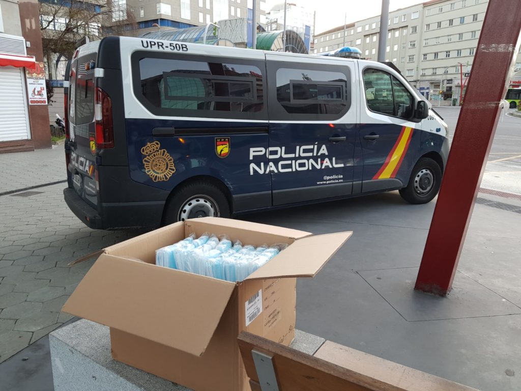 La Policía Local y la Policía Nacional, coordinados por la Delegación del Gobierno en Galicia, han comenzado a primera hora de este lunes en VIgo a repartir las miles de mascarillas enviadas por el Ejecutivo central a la provincia de Pontevedra (210.000 unidades) con el objetivo de llegar “al mayor número de trabajadoras y trabajadores” posible.