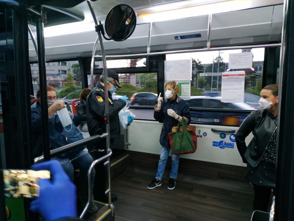 Según ha explicado el representante gubernamental en la comunidad, Javier Losada, este material preventivo “se está repartiendo en los principales nodos de transporte público de las cuatro provincias gallegas”, así como en los accesos a los centros de empleo más relevantes. En el caso de Vigo diferentes efectivos policiales estaban entregando las mascarillas a las 08.00 horas en la plaza de América, concretamente en la parada del autobús situada junto a la plaza del Emigrante.