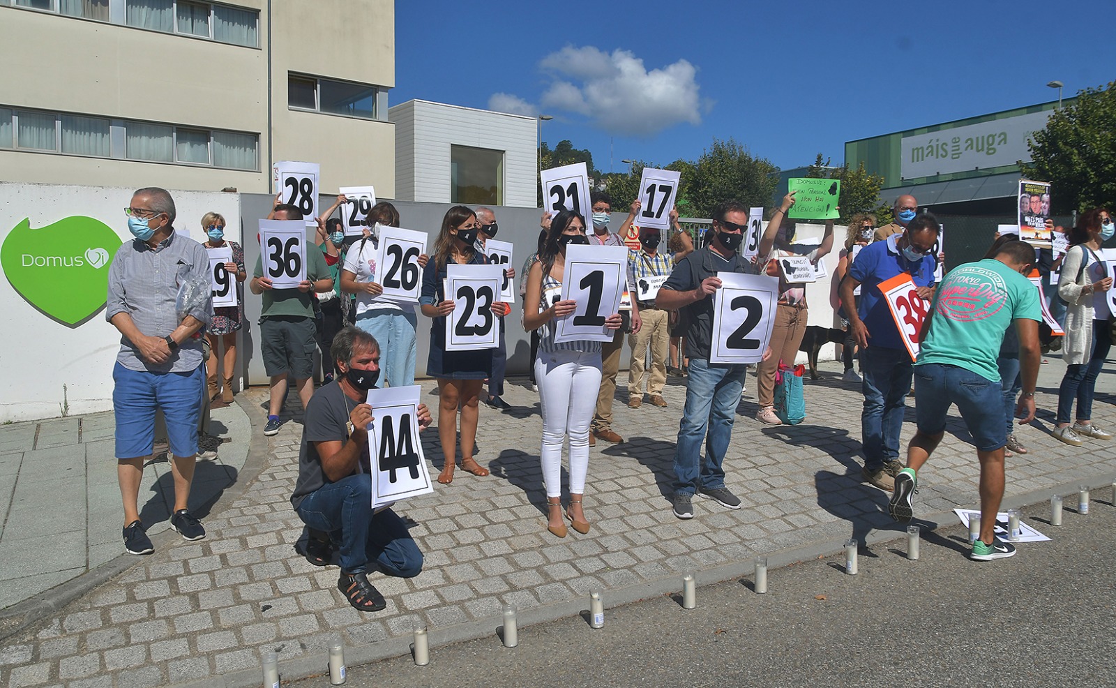 Familiares das residencias da área de Vigo concentráronse este domingo diante do edificio do xeriátrico de DomusVi Barreiro (Vigo) como sinal de honra ás 270 persoas maiores e dependentes falecidas na xestión da pandemia nas residencias, dende marzo. A concentración, e andaina pola contorna da residencia, foi convocada polas asociacións de familiares dos xeriátricos de DomusVi en Vigo (Asfareba) e en Cangas (Vellez Digna), co respaldo da federación galega de familiares REDE e da asociación de familiares da residencia pública de Bembrive (Vigo).