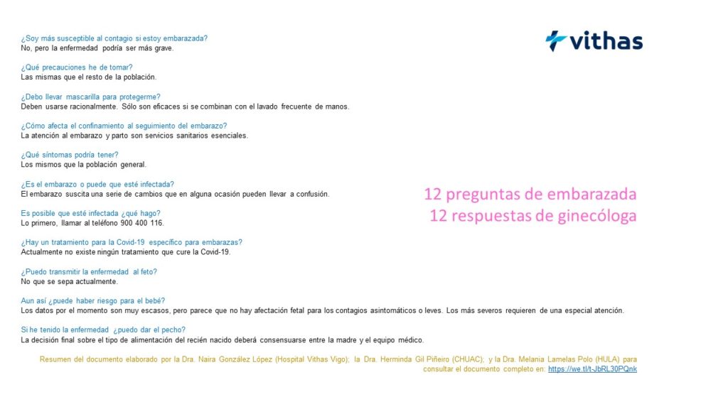 Un grupo de ginecólogas de varios hospitales gallegos, entre ellas la doctora Naira González López, de la Unidad de Reproducción Humana Asistida del Hospital Vithas Fátima de Vigo, ha recopilado una docena de preguntas frecuentes -y sus respuestas- que les han formulado mujeres embarazadas desde el inicio de la pandemia de coronavirus.