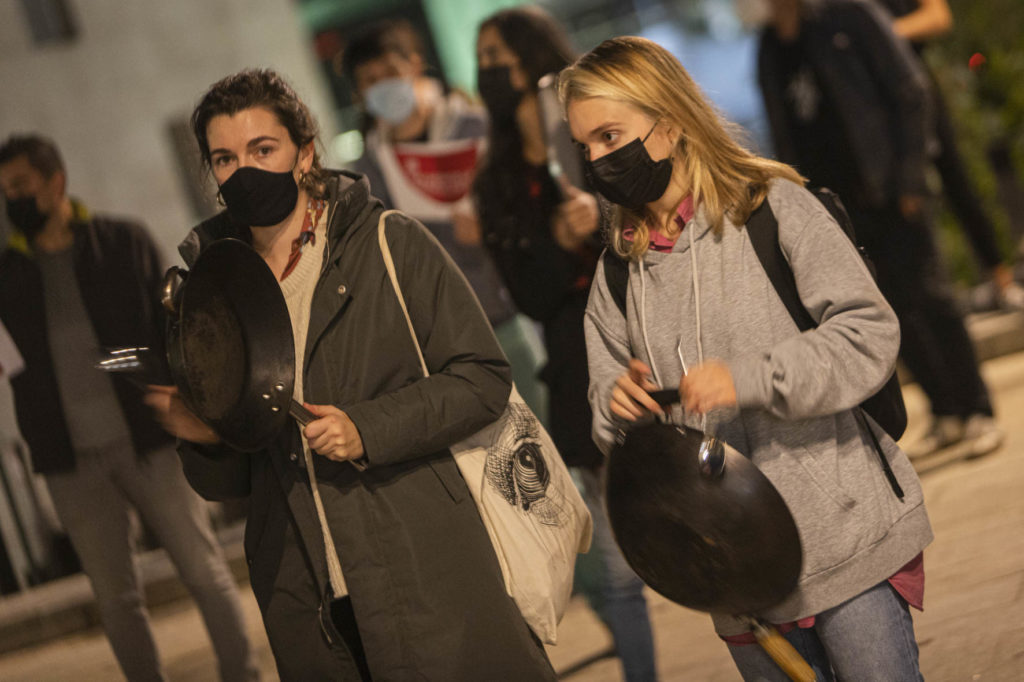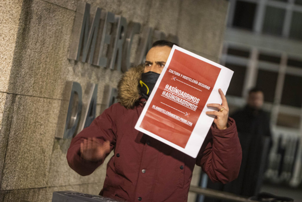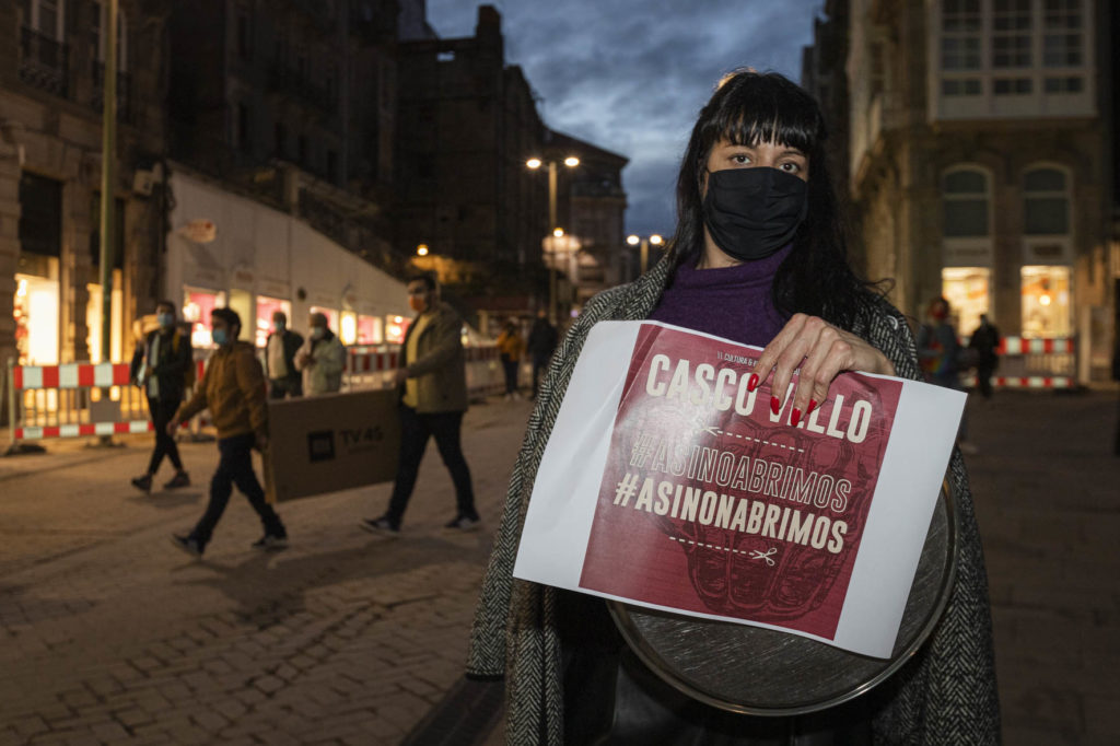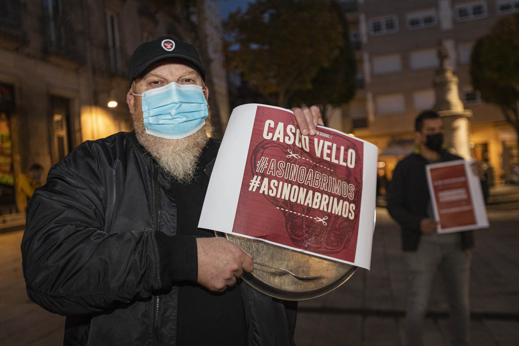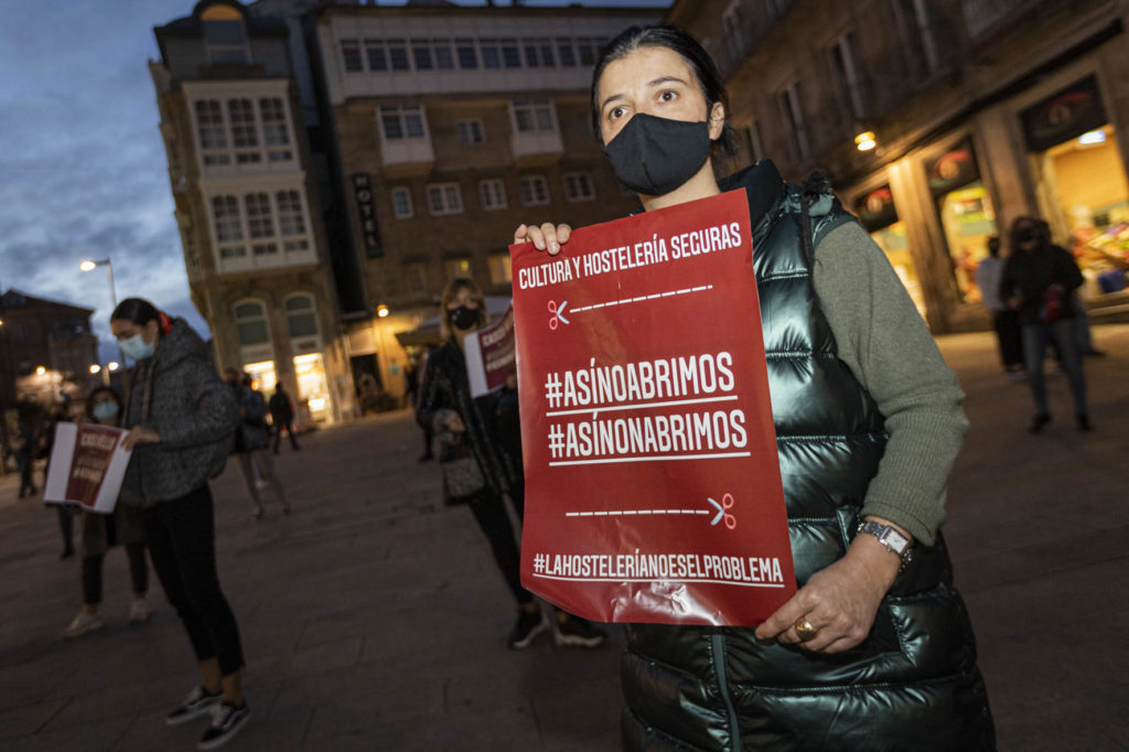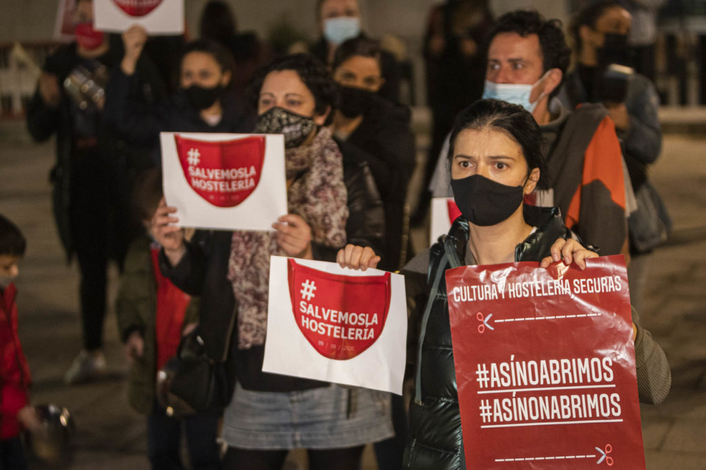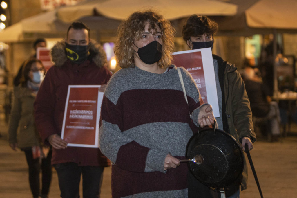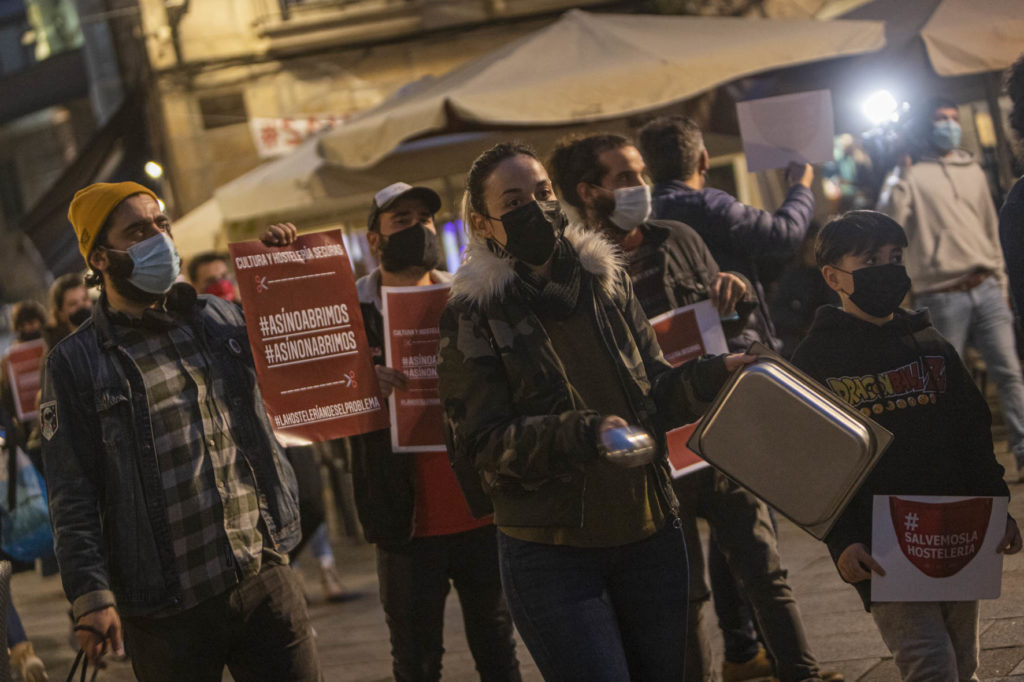 Una decena de hosteleros del Casco Vello de Vigo (Papaxoubas, Princesa, Alta Fidelidad, A Mina, La Consentida, El amante, Buqué, Lume de carozo, Capitán, La favorita, Taberna La Bastarda, A Patela, Haiku, Calma Chicha, El Salón y Uno Está) y otros tantos de la zona de Churruca realizaron a las siete de la tarde una cacerolada en la Porta do Sol y un recorrido por la zona vieja tras echar la verja de sus locales. Era su forma de protestar por las medidas tomadas por la Xunta de Galicia ante la evolución de la segunda ola de la pandemia del Covid-19.