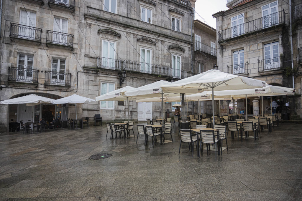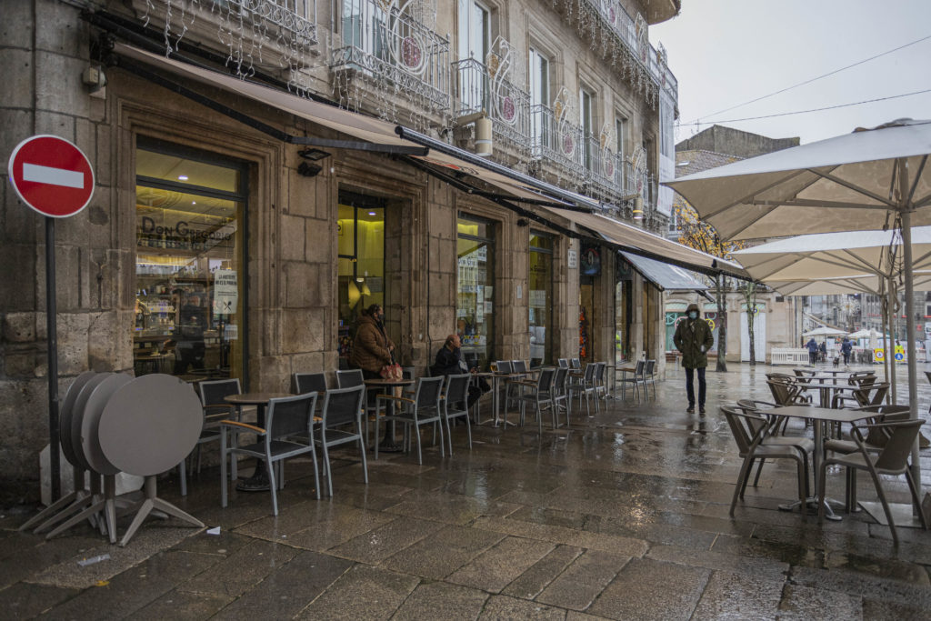 La hostelería viguesa esperaba con ansia el momento de reabrir tras casi un mes de cierre pero no se imaginaba que el escenario sería tan desangelado como el que presentaba la ciudad este viernes por la mañana. El frío y la lluvia han condicionado totalmente el regreso de los desayunos en la cafetería, de los vermús, de las comidas y hasta de las sobremesas. El tiempo no invita a permanecer en las terrazas –disponibles al 50%- y muchos locales se han visto abocados a subsistir con ese 30% de aforo permitido en el interior.