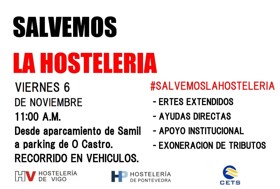 A partir de las 11.00 horas, una caravana de automóviles partirá desde Samil para visibilizar el “duro golpe” que suponen las recientes medidas que “limitan enormemente el desarrollo de nuestra actividad”. Esta manifestación rodada ya estaba planificada antes del anuncio de este miércoles. No obstante, la Federación Provincial de Empresarios de Hostelería de Pontevedra (Feprohos) ha convocado una Junta Directiva Extraordinaria y Urgente para analizar y determinar qué acciones se llevarán a cabo en el futuro para “defender” y “proteger” el sector.
