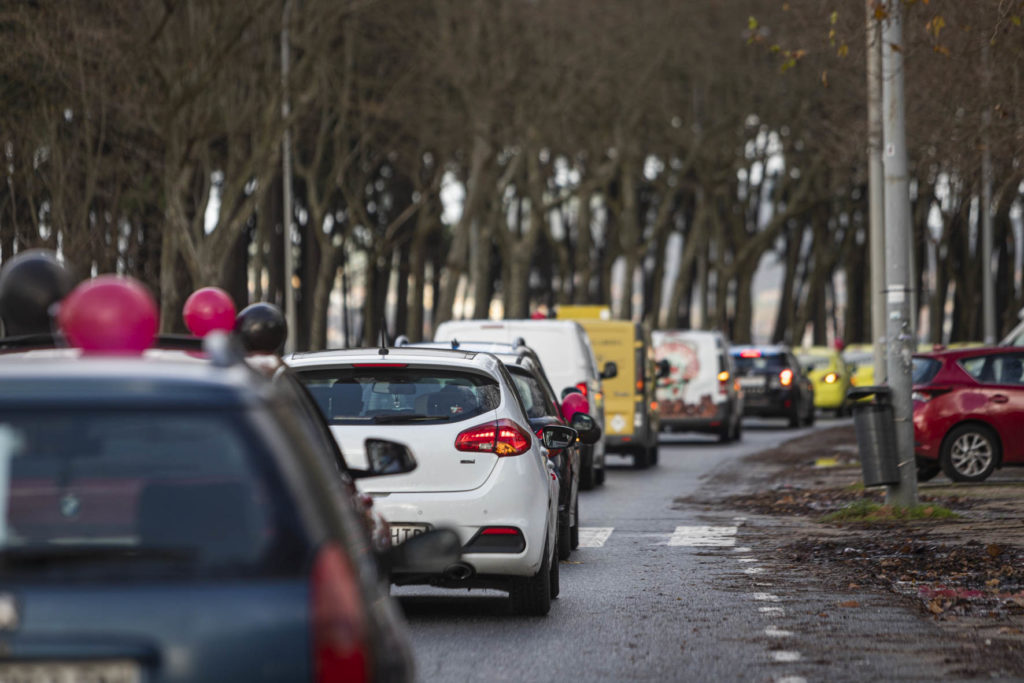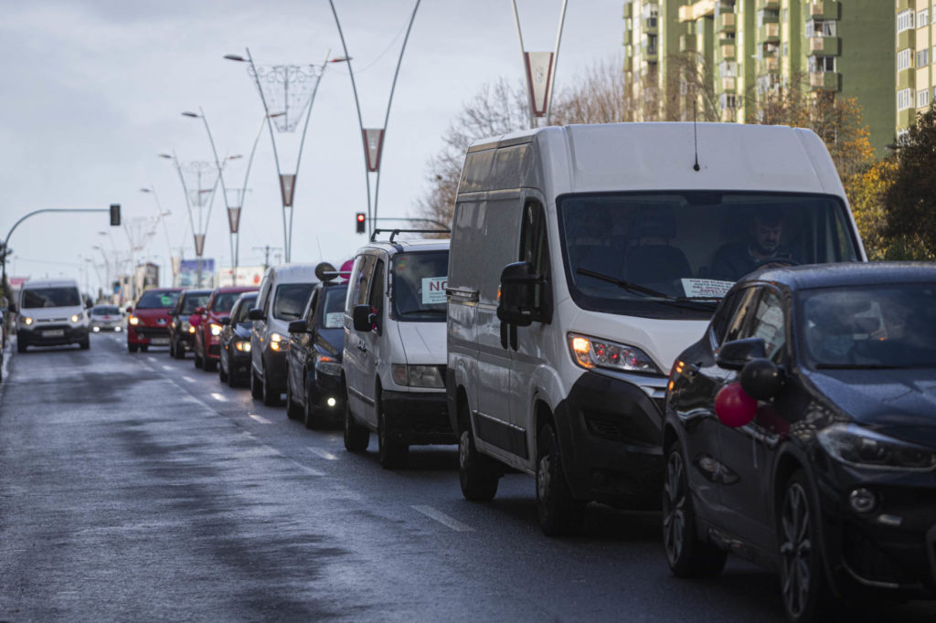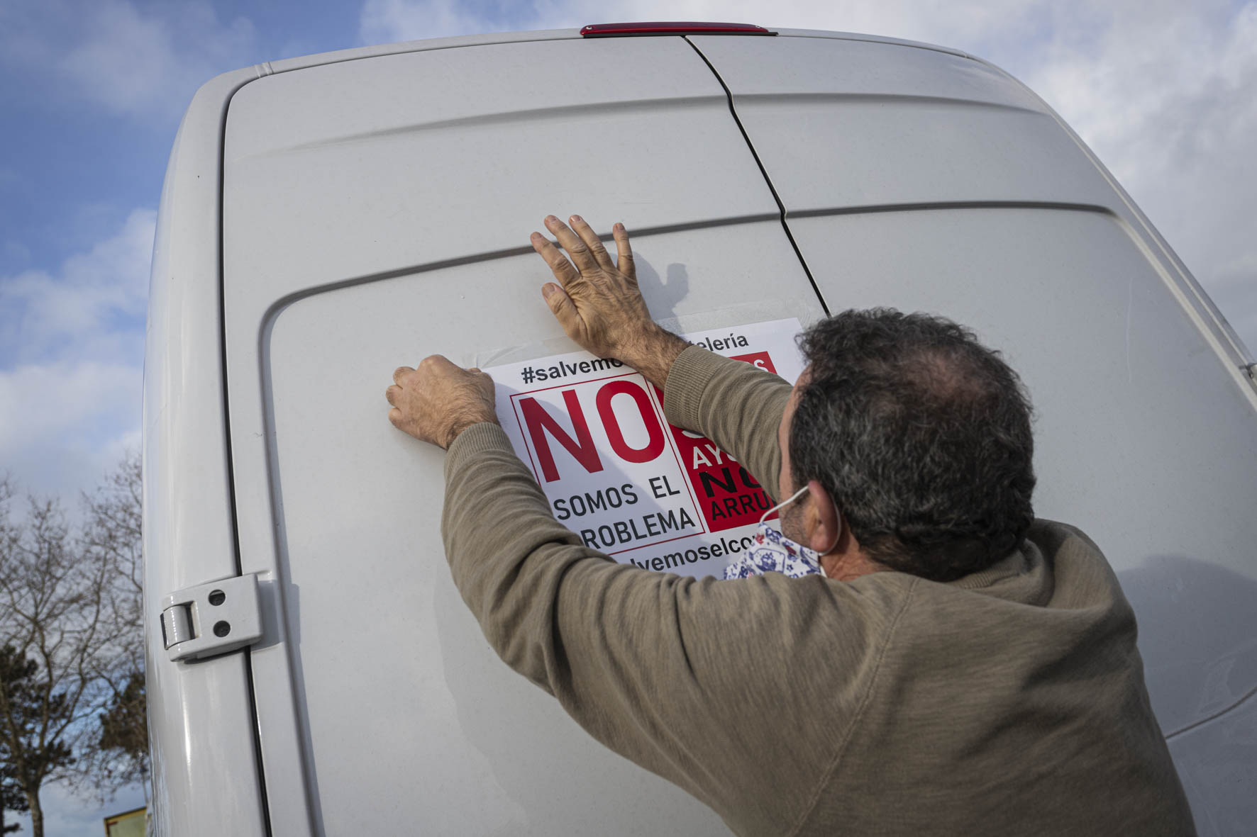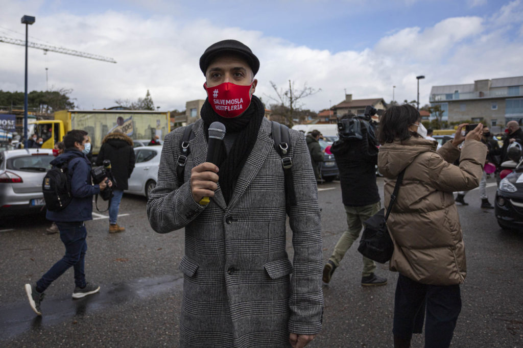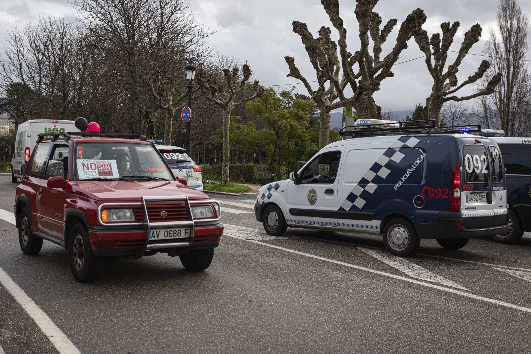 El sector de la hostelería se hizo ver y oír de nuevo este martes por las calles de Vigo. Una larga caravana de coches partió por la mañana de Samil para recorrer la ciudad hasta acabar en O Castro. Era imposible no percibir su presencia. Multitud de vehículos, muchos de ellos rotulados, avanzaban haciendo sonar sus bocinas y enviando un mensaje claro: el sector necesita que la administración le arroje un salvavidas. Muchos están con el agua al cuello. No sólo los locales sino también distribuidores, repartidores, músicos, técnicos, taxistas…