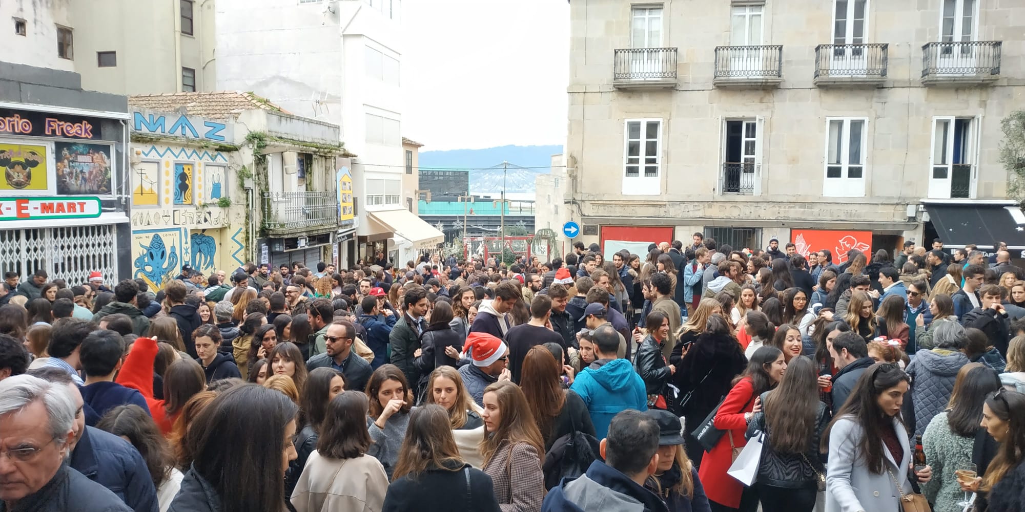 En el caso de Vigo es muy habitual que el Casco Vello -concretamente el entorno de la Colegiata, la Praza da Princesa y la Praza da Constitución- se llene de personas el 24 y el 31 de diciembre para desearse una feliz Navidad y una buena entrada de año.