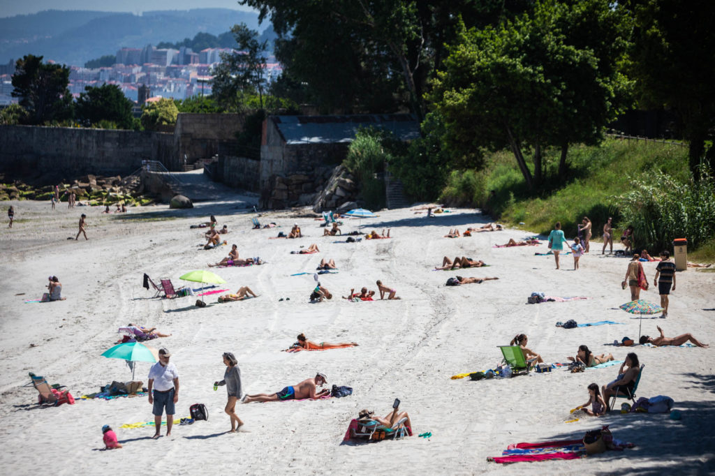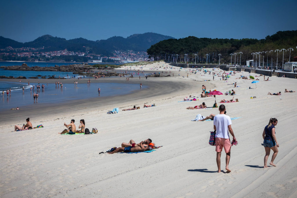 Y es que ya había ganas de disfrutar de un baño o de estar tirado en la playa cogiendo algo de moreno. Y encima la situación ha sido de lo más propicia, con una previsión del tiempo que da más de 30 grados en Vigo entre el lunes y el jueves. Así, no ha resultado extraño ver a tanta gente desplegando sus toallas ya de buena mañana.