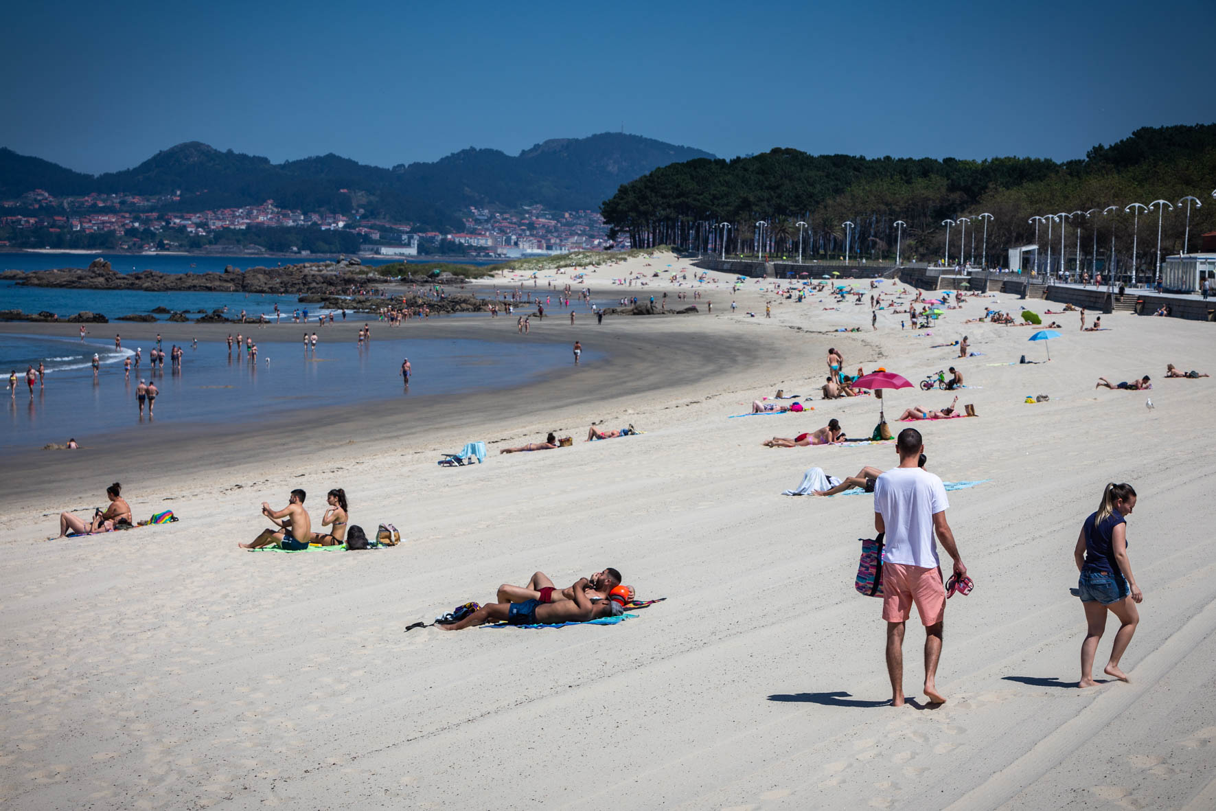 El regreso de los vigueses a las playas para poder bañarse o tomar el sol no se ha hecho esperar. Este lunes la ciudad entraba en la Fase 2 de la desescalada y, por tanto, se volvía a permitir el uso de los arenales para más que dar un paseo. Y ya por la mañana se empezó a notar una considerable afluencia de gente en zonas como Samil o Alcabre.