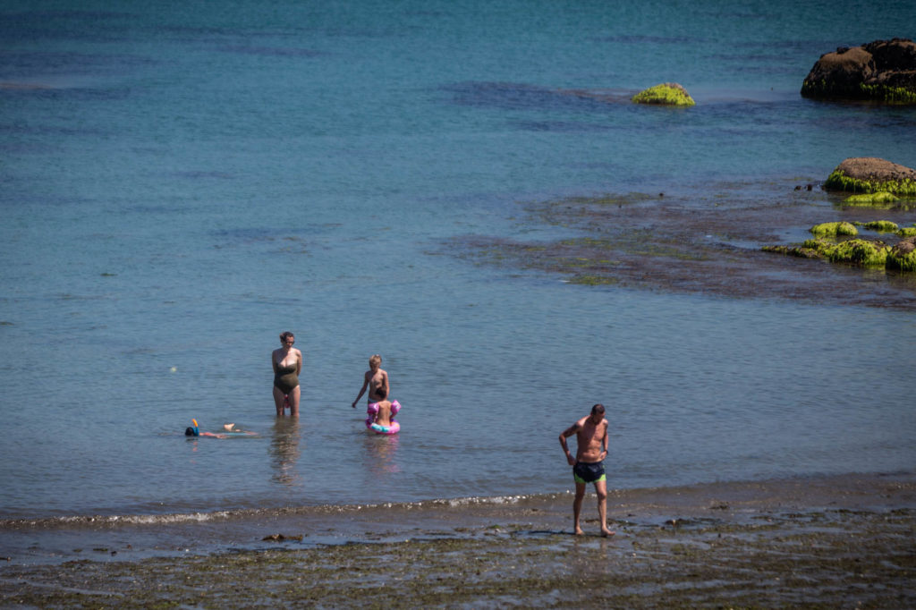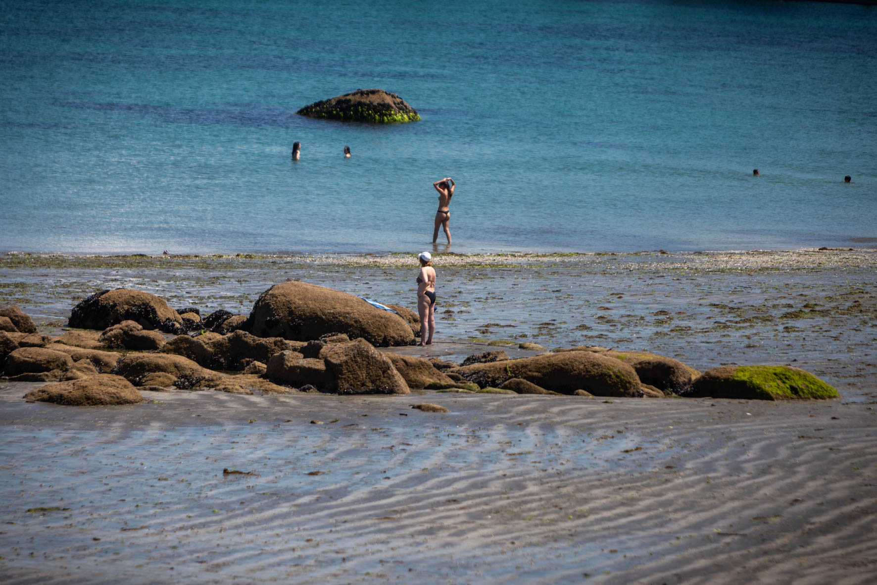Con cierta vigilancia policial desde el paseo, los usuarios dejaron claro que, por el momento, no ha sido necesario efectuar intervenciones, ya que el comportamiento fue ejemplar. Con espacio de sobra para distribuirse y a la espera de que se active la parcelación de la arena, en Samil se guardaron perfectamente las distancias entre grupos. En las playas de Alcabre, pese a ser pequeñas, también se podía apreciar la separación.