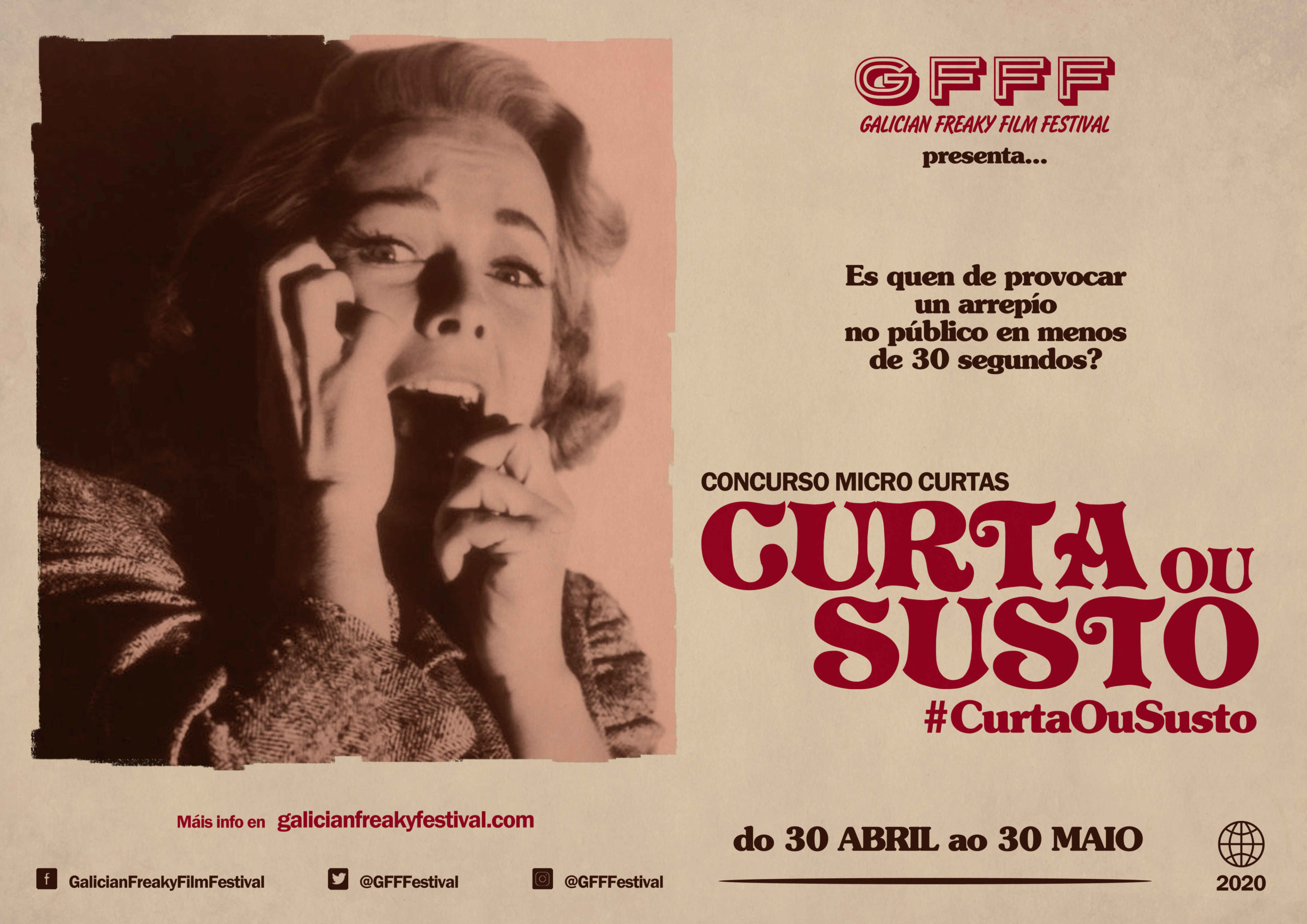 Para iso activa o concurso ‘Curta ou Susto’, no que se poderá participar ata o 30 de maio con obras dun máximo de trinta segundos (sen ter en conta a duración dos créditos finais) nos que se transmita calquera sensación que produza un forte arrepío nos espectadores.