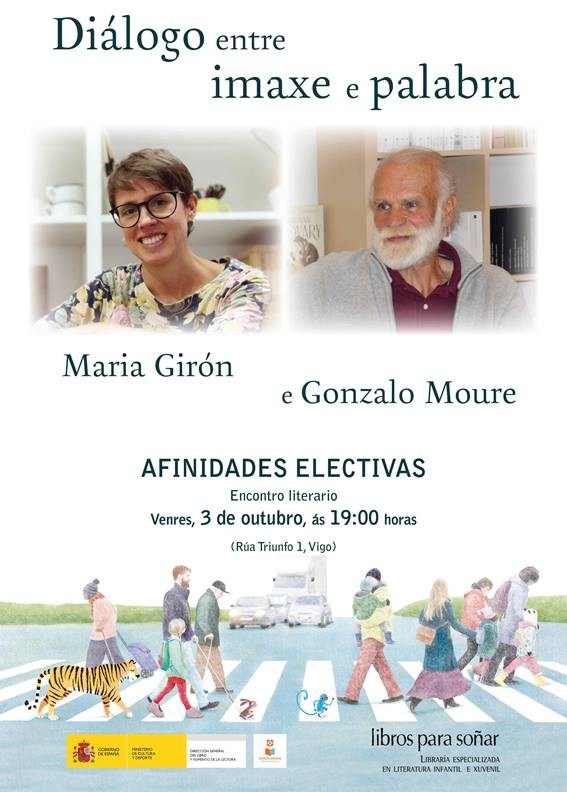 La librería Libros para soñar se convertirá en un punto de encuentro de primer nivel para la literatura y la ilustración infantil y juvenil. Este viernes, 3 de octubre, a partir de las 19:00 horas, la ilustradora catalana Maria Girón y el escritor asturiano Gonzalo Moure mantendrán un «Diálogo entre imaxe e palabra». El encuentro, enmarcado en la sexta edición del programa Afinidades electivas del Ministerio de Cultura, está dirigido a un público profesional y adulto interesado en la mediación lectora, la docencia, y la creación artística.