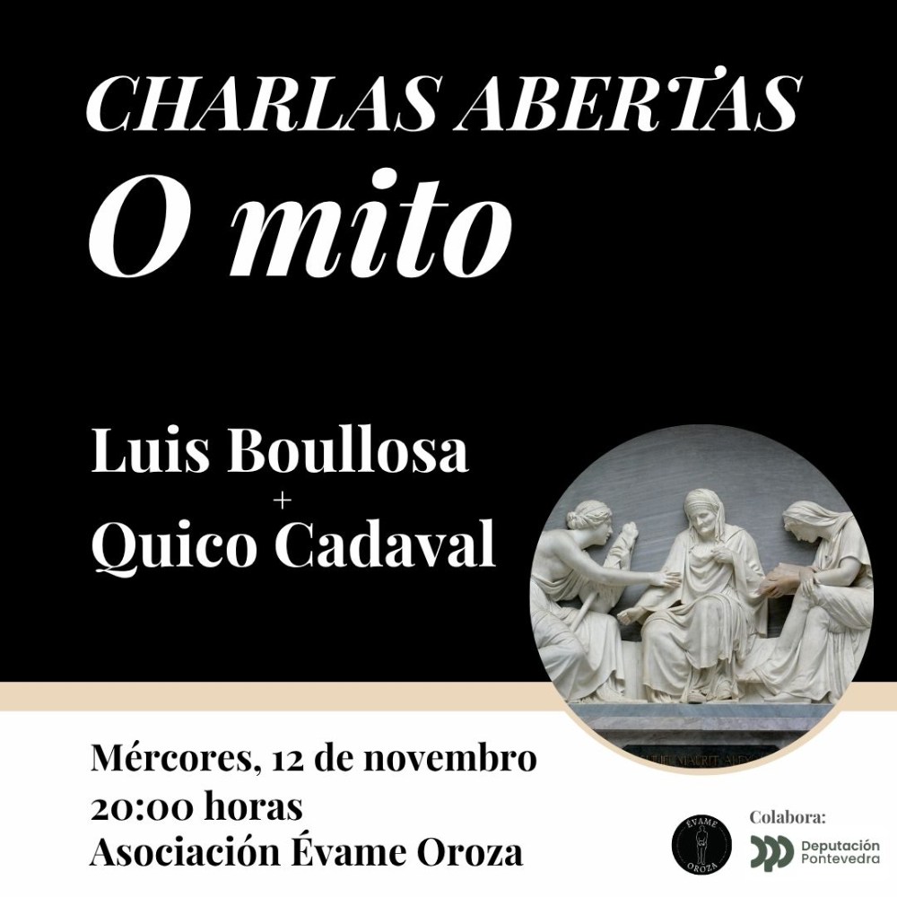 El espacio cultural Évame Oroza inaugura hoy, 12 de noviembre, la segunda edición de su ciclo Charlas Abiertas, una propuesta que consolida su apuesta por el diálogo y la reflexión crítica en el corazón del Casco Vello Alto. El evento, que cuenta con la colaboración de la Diputación de Pontevedra, arranca a las 20:00 horas con un tema central de profundo calado: el mito.