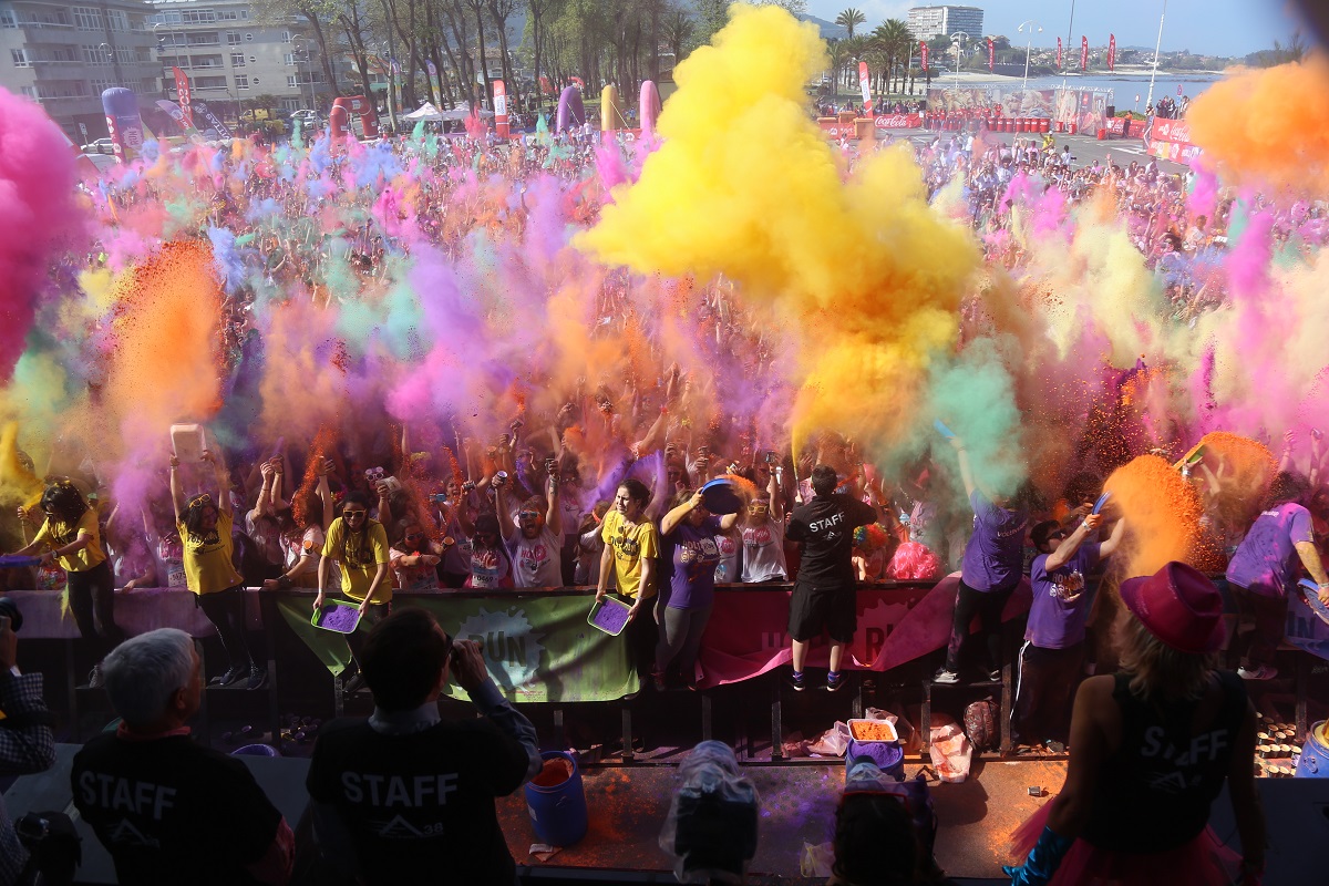 Uno de los puntos fuertes de la fiesta posterior será el popular Holi Boom, el lanzamiento colectivo de colores que inunda a los participantes en una nube de alegría y colorido.
