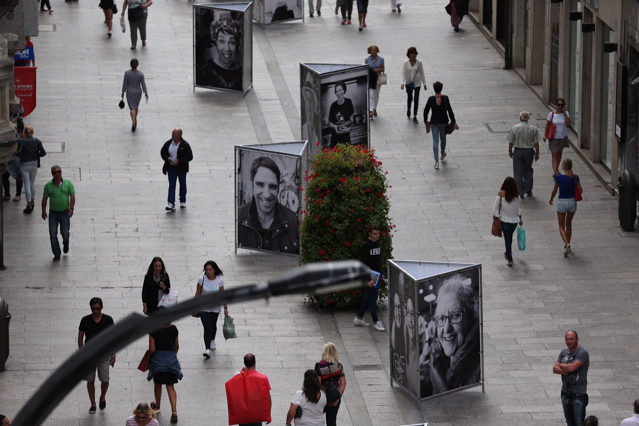 El fotógrafo Javier Teniente es el responsable de que la calle más comercial de Vigo muestre desde este lunes su cara más sonriente. Un total de 96 imágenes con vigueses riendo decoran Príncipe. Se trata de la última iniciativa del programa municipal de adecentamiento y embellecimiento de medianeras y en este caso la muestra fotográfica permanecerá hasta finales de septiembre.