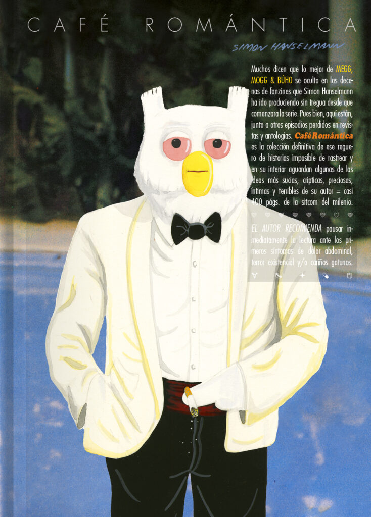 Hanselmann nos devuelve (¿nos regurgita?) la necesaria dosis de miserable vida cotidiana de sus míticos personajes Megg, Mogg y Búho. Se trata de una recopilación de historias cortas dispersas por el universo fanzinero del autor, con el añadido de varios relatos inéditos.