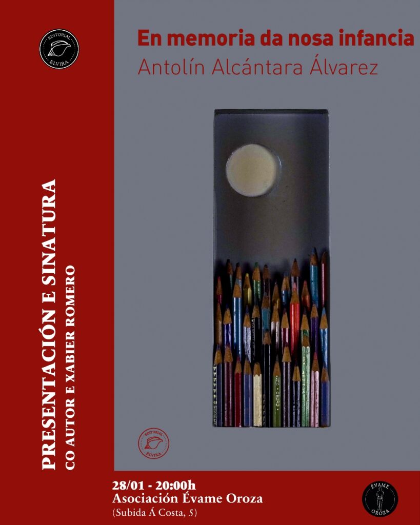 La literatura gallega vuelve a citarse con la historia reciente en el corazón de Vigo. Este 28 de enero, a las 20:00 horas, el espacio cultural Évame Oroza se convertirá en el escenario de la presentación de ‘En memoria da nosa infancia’, la última obra de Antolín Alcántara Álvarez. El acto, que contará con la participación del autor y del editor de Editorial Elvira, Xabier Romero, promete ser un ejercicio de arqueología sentimental y social sobre una generación que creció entre silencios y transformaciones.