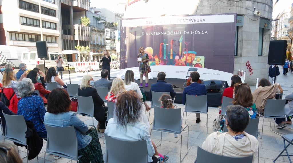 Montesinos y Sotelo ofrecieron un espectáculo musical y de danza a través de una pieza flexible y visual, transmitiendo todo lo bueno que trae la música para espantar los males. Al acto, que contó con intérprete de lengua de signos, no faltaron la presidenta de la institución provincial, Carmela Silva, y el alcalde de Vigo, Abel Caballero.