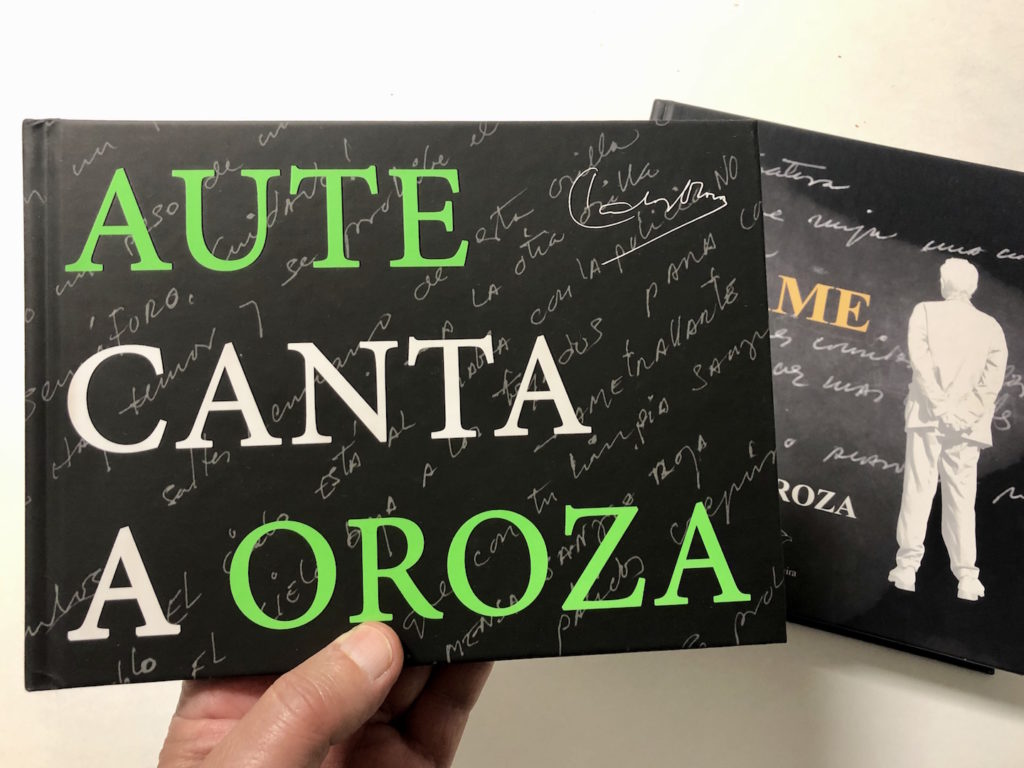 El libro-disco “Aute canta a Oroza” (2015 – Editorial Elvira) fue la culminación de un trabajo en común, una obra conjunta aun cuando Oroza ya había fallecido hacía unos años. Yo tuve la oportunidad y el privilegio de observar desde la primera fila el planteamiento de la musicalización de los poemas de Carlos Oroza desde el principio, cuando Oroza aún vivía, unos años antes de su fallecimiento.