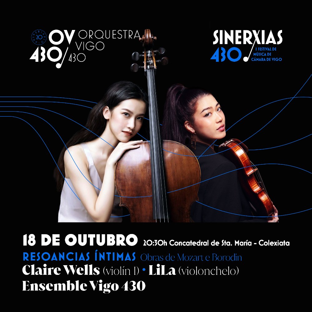 La Orquesta Vigo 430 invita al público vigués a una inmersión profunda en la historia de la música de cámara. En el marco de su Festival «Sinerxias», la formación presenta el programa «Resonancias íntimas», un diálogo musical que une la audacia clásica de Wolfgang Amadeus Mozart con el lirismo apasionado del compositor ruso Aleksandr Borodin. Este encuentro de excelencia tendrá lugar este sábado 18 de octubre a las 20:30 horas en un marco incomparable: la Concatedral de Santa María de Vigo (Colexiata). La entrada será libre hasta completar aforo.