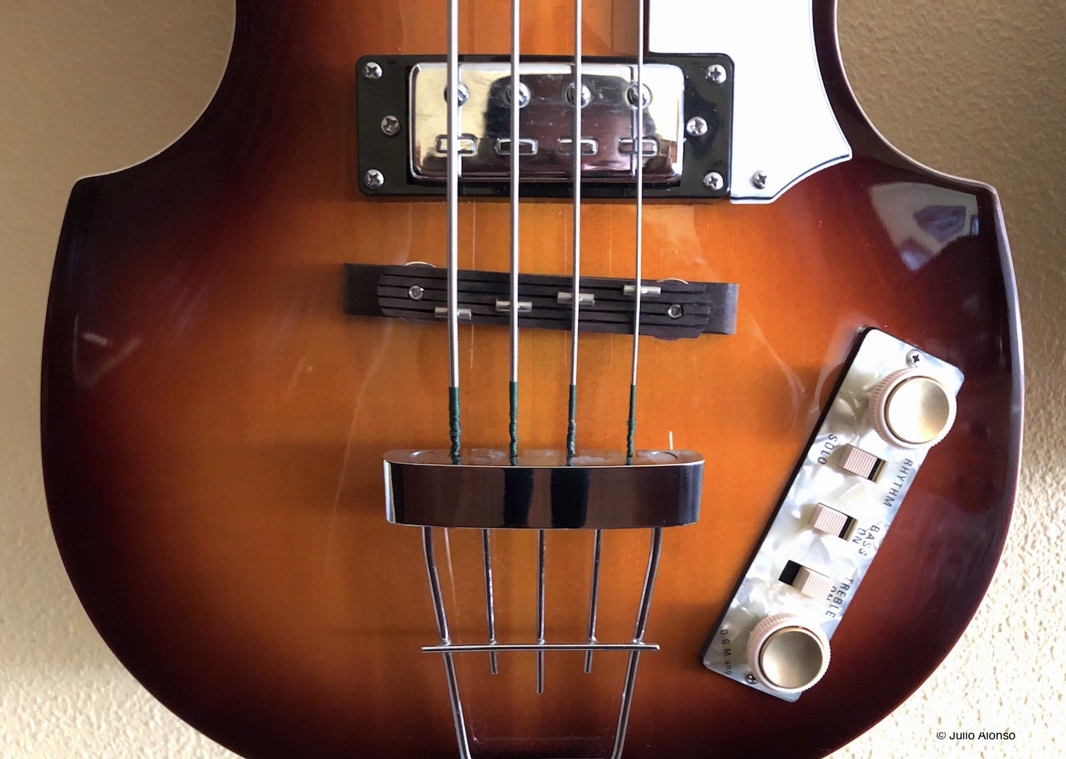 Paul McCartney, el bajista y compositor, utilizó con preferencia el Hofner Bass 500/1, pero también utilizó el Rickenbacker 4001S. En la actualidad, McCartney utiliza varios instrumentos en sus actuaciones en vivo, desde el piano hasta la guitarra acústica, el ukelele —regalado por Harrison—, la guitarra eléctrica Gibson, sin olvidar el bajo Hofner, que se ha convertido en el instrumento más icónico del famoso conjunto británico. La fotografía muestra un auténtico bajo Hofner fabricado en la actualidad. De este instrumento existen diferentes acabados y muchas calidades, según hayan sido fabricados en Alemania o en países orientales. Su precio va desde poco más de cien euros hasta varios miles en sus ediciones limitadas y de aniversario, un abanico de precios que permite que el icono de The Beatles esté al alcance de casi todos los bolsillos.